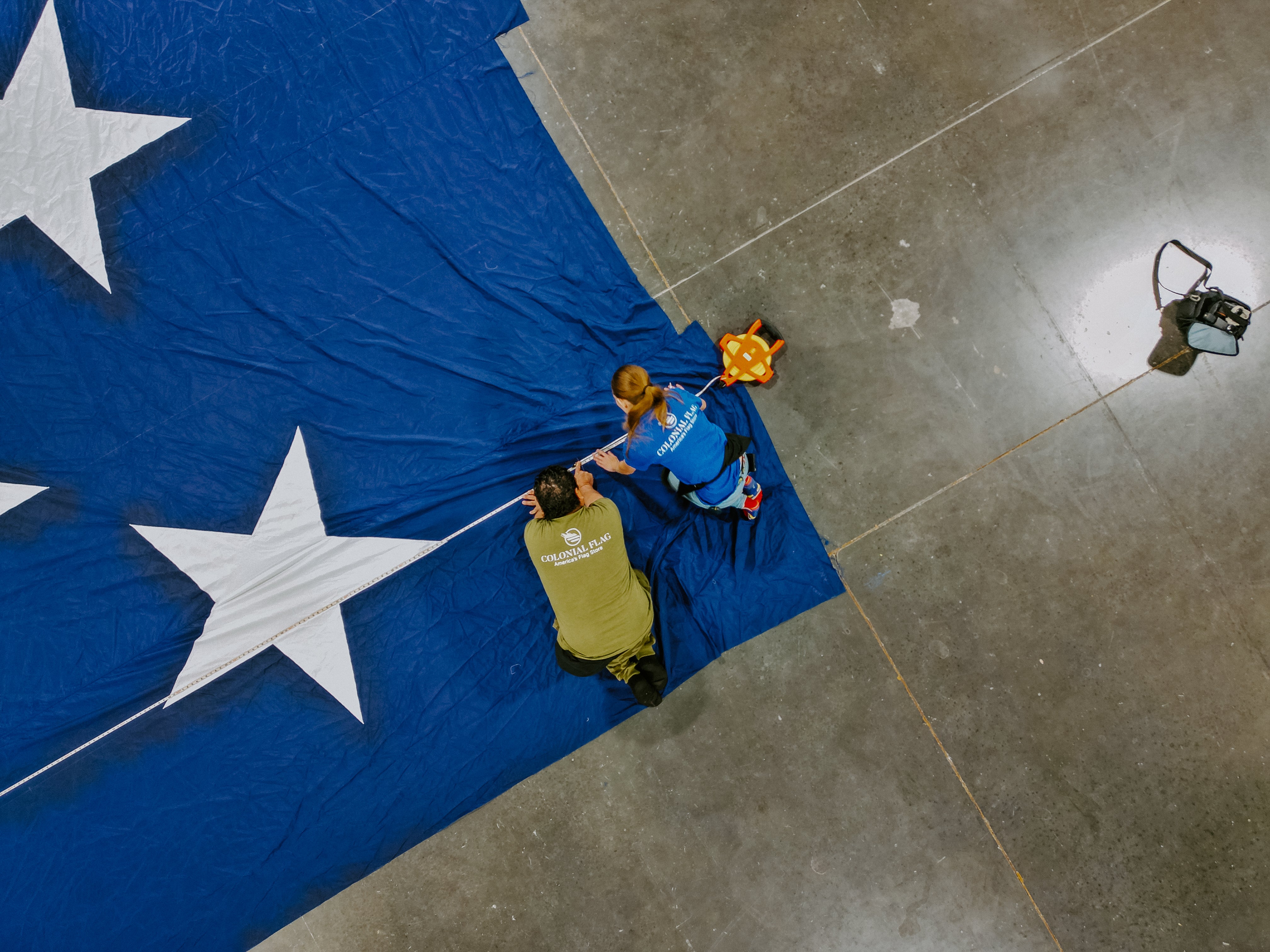 Included below is a small sampling of images from the thousands of projects we have produced and provided. We specialize in creating big or even massive custom flags, structures, flagpoles and large custom flag projects for any event or cause.