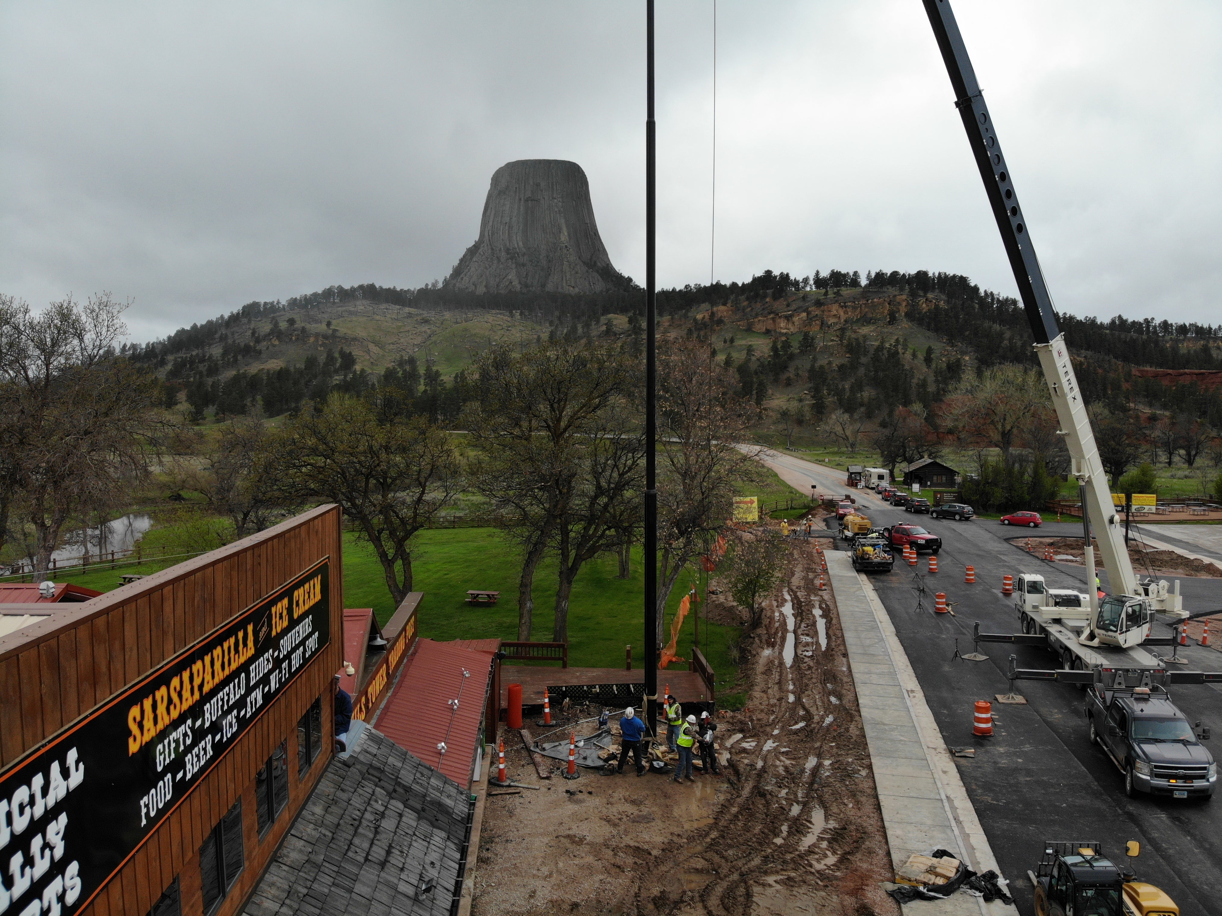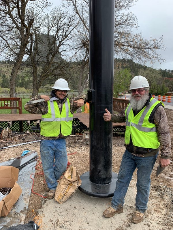 Colonial Flag manufactured this high profile flagpole which makes a strong patriotic statement on the road to historic Devils Tower National Monument.