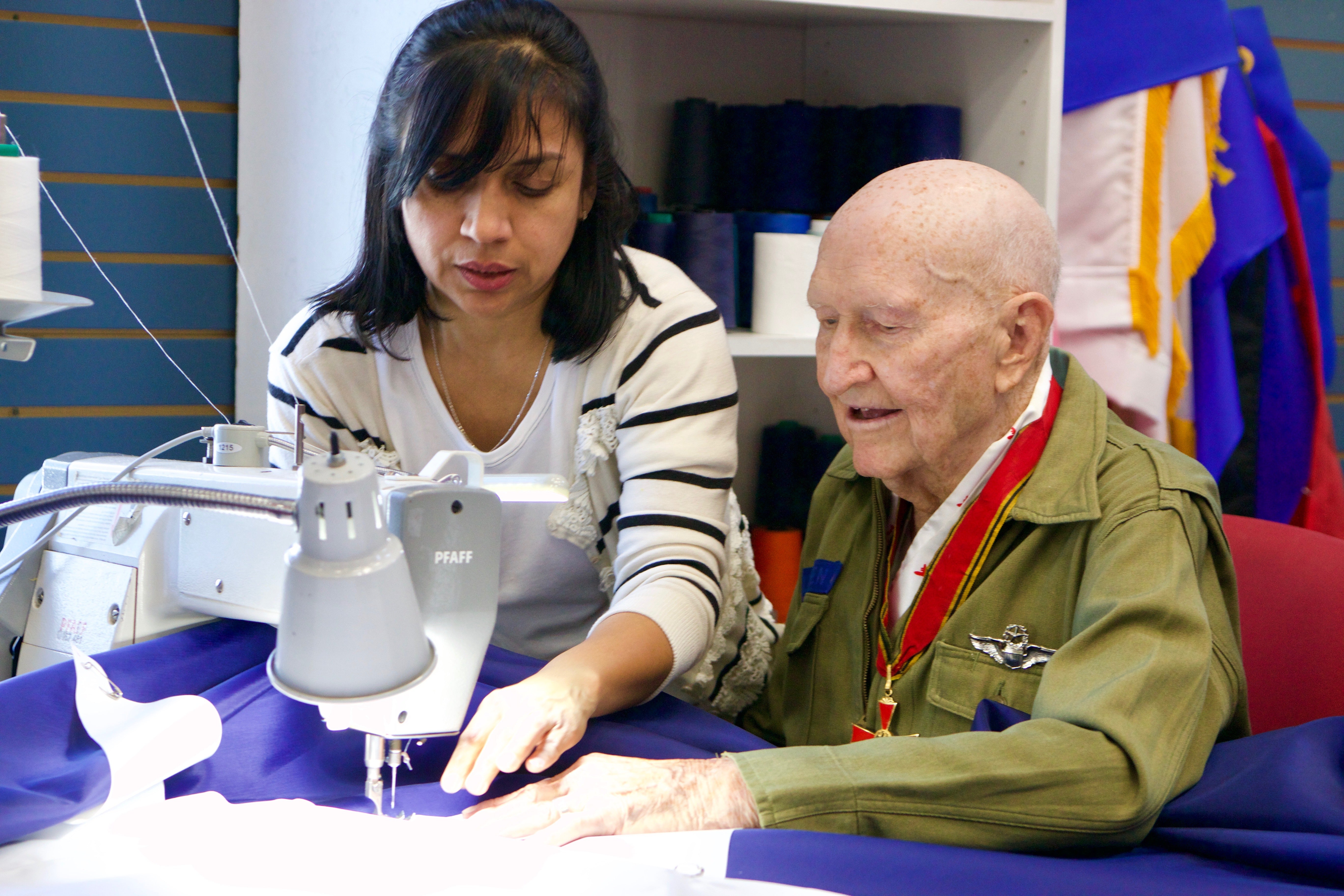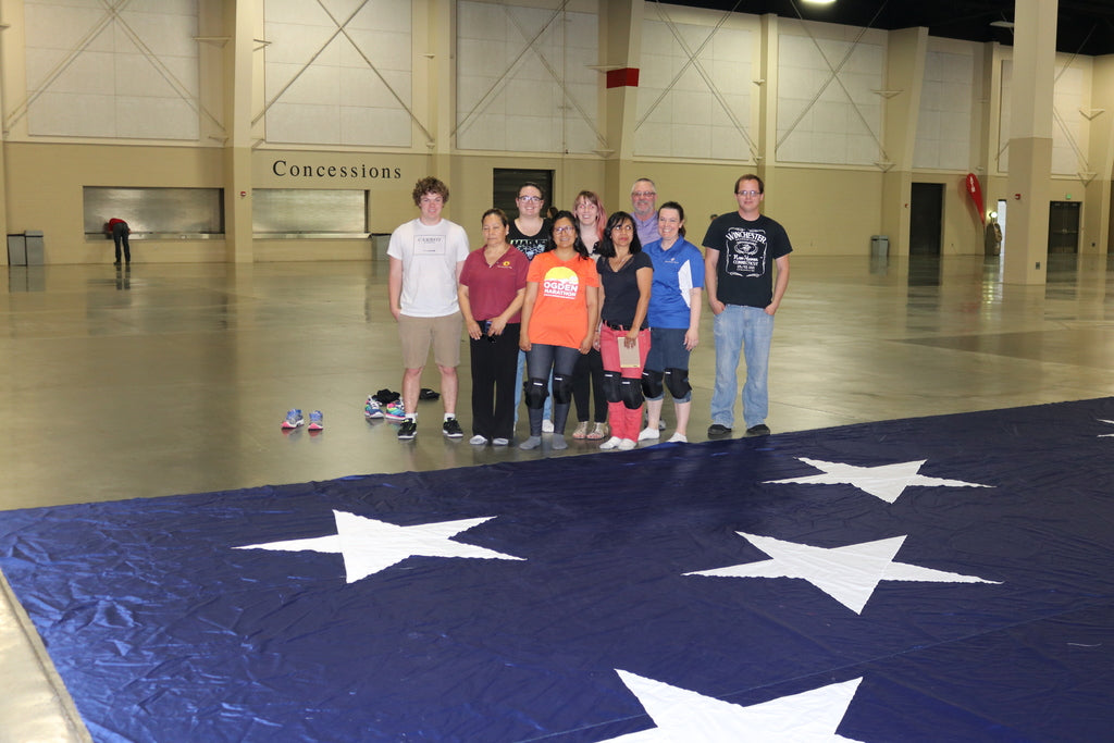 In 2017 the nonprofit group Follow the Flag commissioned Colonial Flag to create a 150'x75' flag they could display in Pleasant Grove Canyon on the 4th of July and other holidays. They did it again with another giant flag for Ogden Canyon in 2018 and then a second giant flag for Pleasant Grove Canyon in 2019. While making these flags we had a visit from the "Candy Bomber" himself, Gail Halverson.