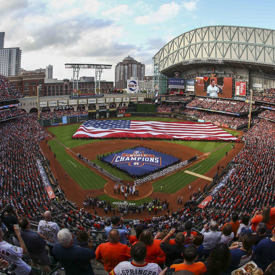 Colonial Flag was privileged to make a giant banner for the Houston Astros to celebrate their first ever championship. This banner was displayed during a game in the Spring of 2018. The Astros also displayed a 150'x300' US Flag on the field along with this banner.