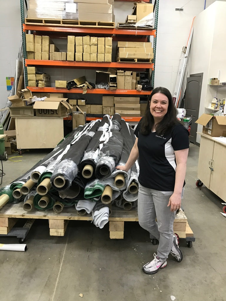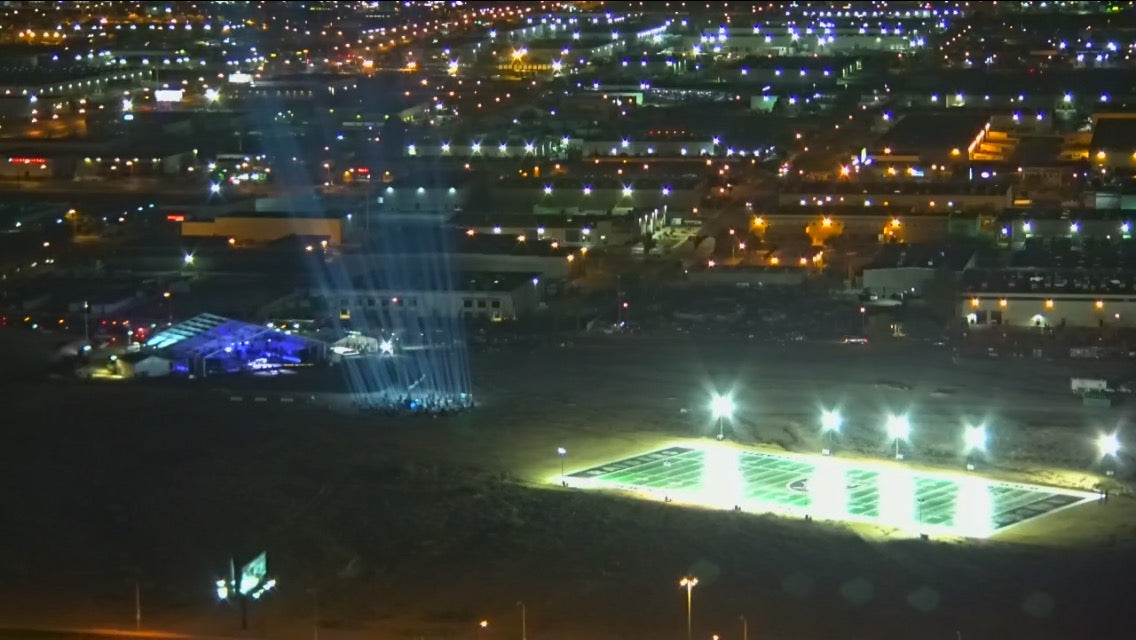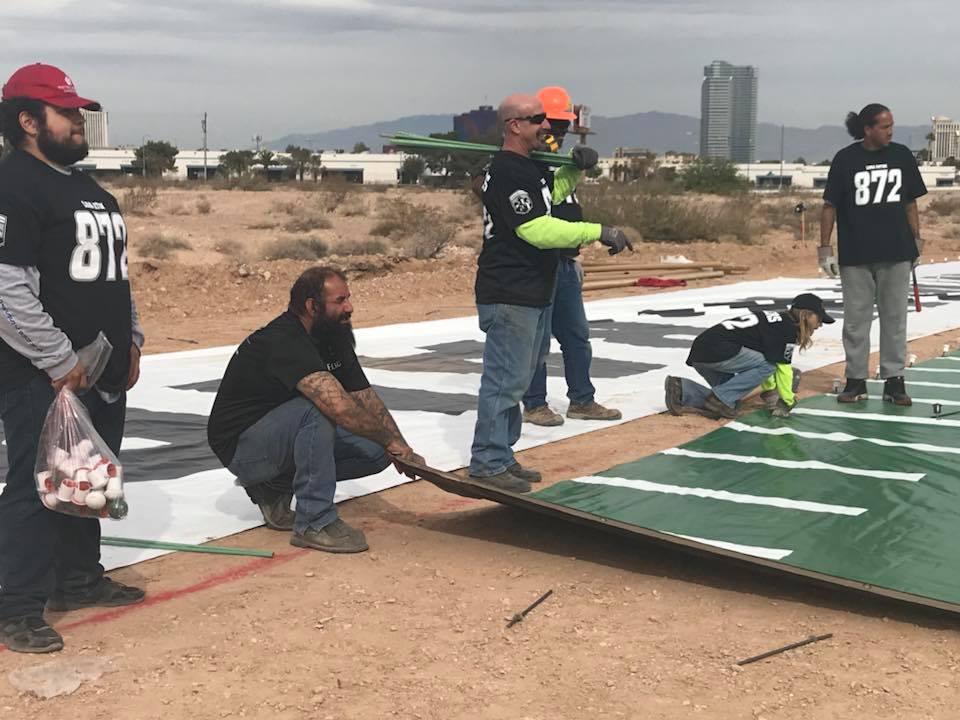 Colonial Flag produced and installed this football field sized custom vinyl presentation to commemorate the announcement of the Raiders football team moving to Las Vegas. The huge vinyl panels used to create this presentation were laid out and staked by the Teamsters Union and the Colonial Flag team all in one day.