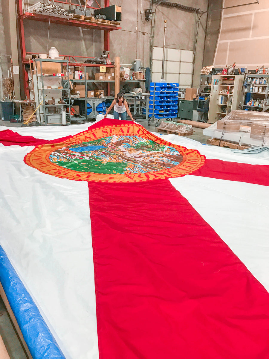 We specialize in creating small to giant flags, flagpoles and large custom flag projects for any event or cause. We have designed, customized, and supplied giant oversized flags and poles for scores of events and stadiums across the nation. Click here to view some of our previous projects.