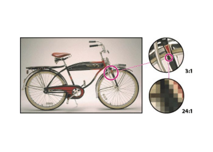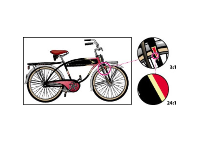 Drawing programs such as Adobe Illustrator create vector graphics, made of lines and curves defined by mathematical objects called vectors. Vectors describe graphics according to their geometric characteristics. For example, a bicycle tire in a vector graphic is made up of a mathematical definition of a circle drawn with a certain radius, set at a specific location, and filled with a specific color. You can move, resize, or change the color of the tire without losing the quality of the graphic.